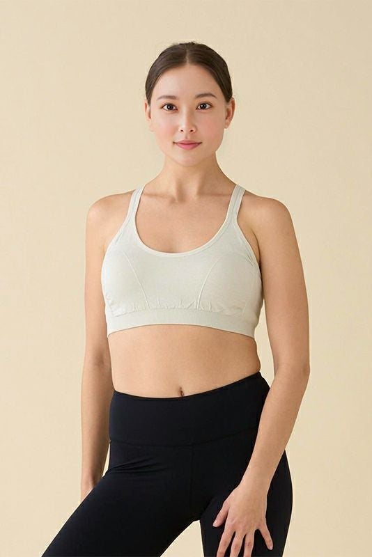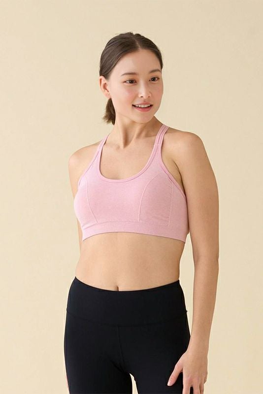 シームレスで編むことで360度ストレッチを実現したストレスフリーなこだわりブラトップ。 バストを囲むギャザーとフロントタックのピンタックがバストラインを丸く美しく構築。 部位によって編み分けることにより、締め付けがなくストレスフリーな着ごこちです。 背中を美しく見せるクロスストラップは着用時の安定感を出し、ヨガの動きにも快適フィットしてくれます。 インナーとしても、一枚でも使える万能アイテム! 耐久性がありイージーケアで使えるため、ヨガビギナーの最初の一枚から、エキスパートの洗い替えにおすすめ。