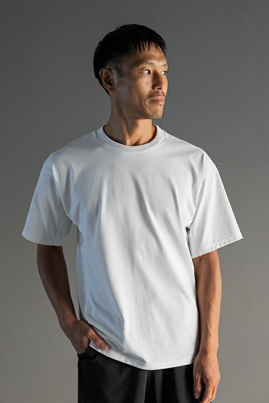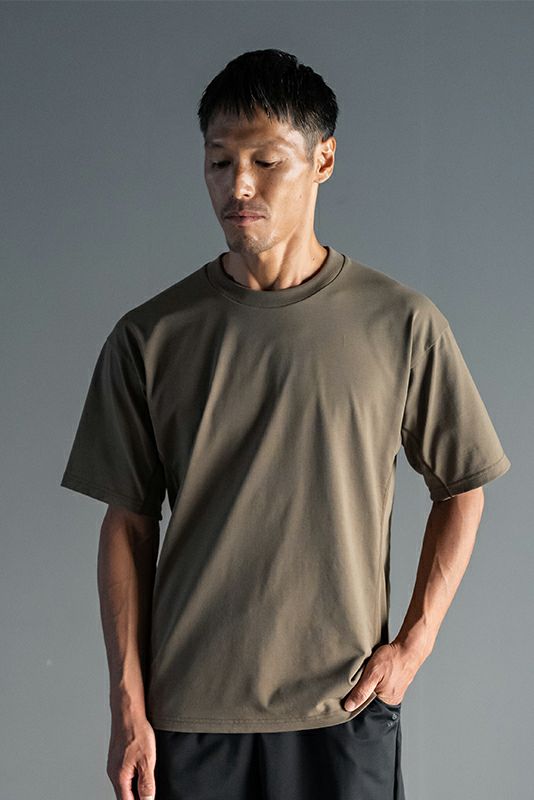 袖下にマチをつけたり、動きやすさを考慮したフィッティングと、スポーティすぎないナチュラルなコットン見え素材で、ヨガに最適な1枚です。ユニセックスでも着用していただけます。