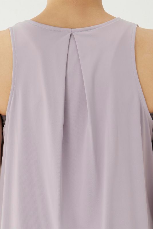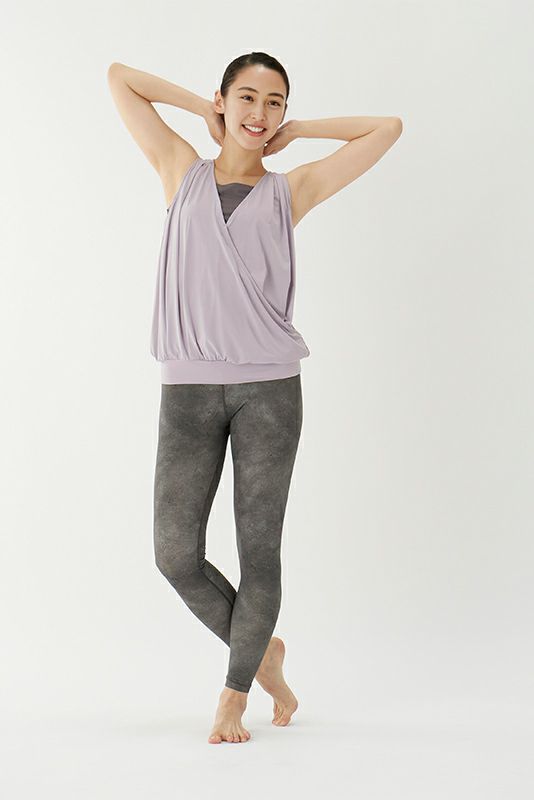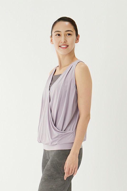 タンクトップはドレープが綺麗に流れるデザインになっており、気になるお腹周りをしっかりカバー。