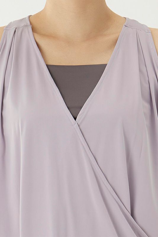 フロントドレープがきれいなレイヤードブラ付トップス。