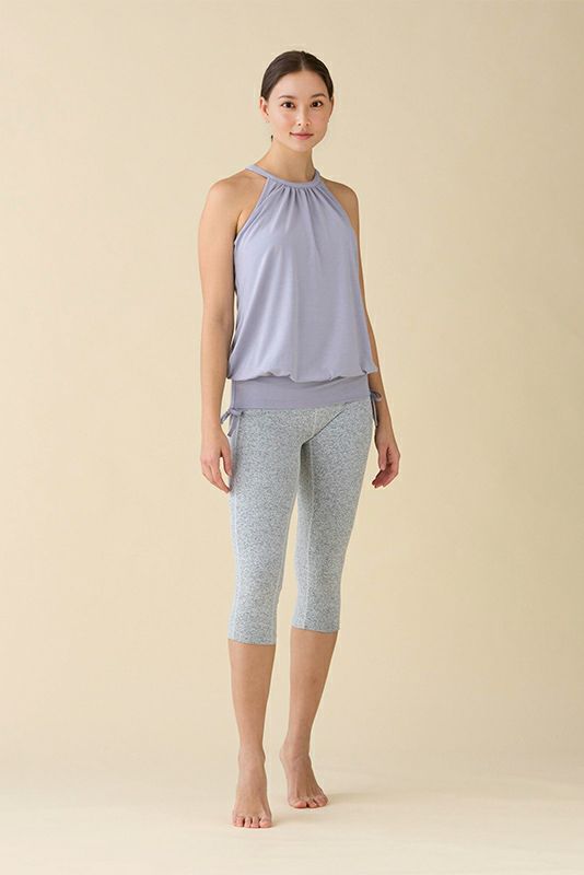 ポーズをとってもウエストが下がってくることが気にならないよう、股上が深いタイプ。高いストレッチ性と速乾性を持つイタリア製素材を使用し、ストレスフリーなはき心地を実現しました。アシュタンガヨガなどのハードな動きにも対応できるカプリ丈で、ホットヨガやランニング、ワークアウトにもおすすめです。