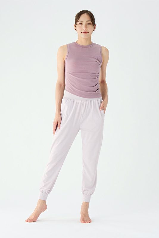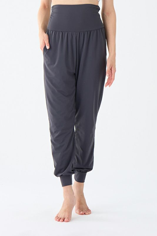 ゆとりがあり、リラックスして履けるシルエットでコンパクトなトップスと相性の良いアイテム。ウエストを綺麗に見せてくれる脇に入ったギャザーデザインが特徴です。軽量で吸水速乾性に優れた素材を使用しているのでホットヨガに特におすすめです。