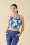 suriaのオリジナル、油彩柄のプリント。前はクルーネックでしっかりホールドしつつ、後ろはクロスデザインで綺麗な肌見せが叶うブラトップです。同柄の