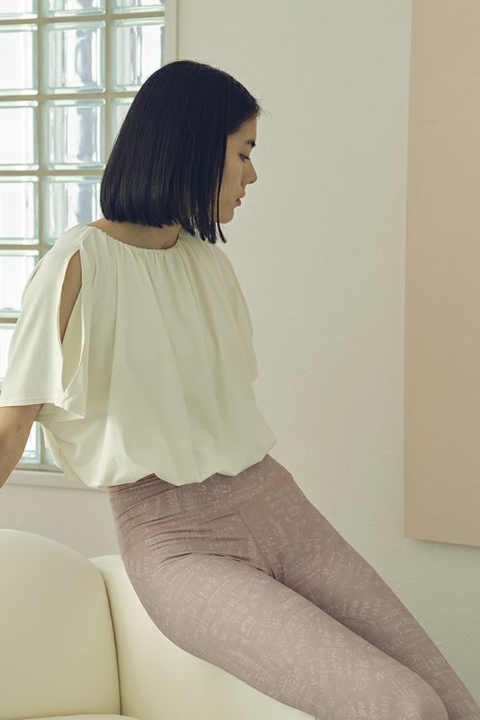 25SSシーズンコンセプトを体現した楽譜がコラージュされたプリントレギンス。同色系なので主張しすぎず、どんなトップスにもコーディネートしやすいデザインです。