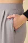 しなやかな伸びと適度な厚みのダブルニットで作った、スッキリ細身のテーパードパンツ。ウエストの紐でサイズ調整が可能です。