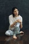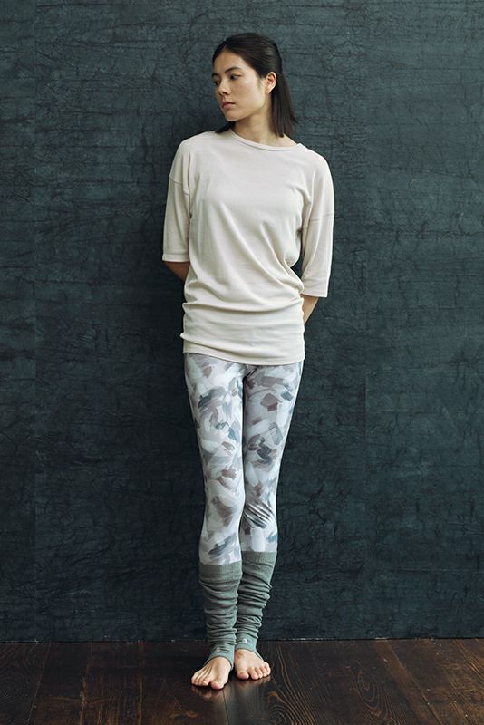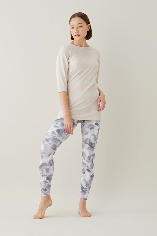 水彩のような柄が特徴のレギンス。どんなトップスにも合わせやすい優しい配色にこだわりました。