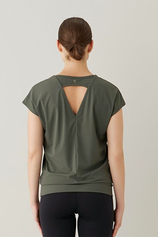 裾が2重になってヒップでフィットするデザインになっています。後ろはV字のあきがあり、ベンチレーションとして機能するほか、インナーのブラをチラリと見せてコーディネートした時に綺麗に見えるように工夫されています。