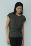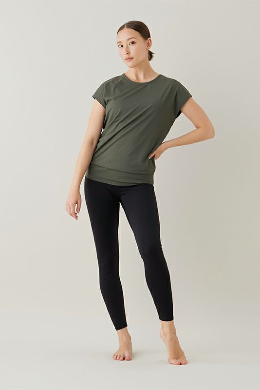 非常に希少性の高いポリウレタンも扱えるハイゲージの編機(36G)を使い、繊細な表情の組織で編み立てた軽やかで清涼感のある織物ライクな生地です。さらに製品映えするよう、適度な柔らかさとハリ感を与える特殊加工で仕上げました。シワになりにくい高機能素材です。
