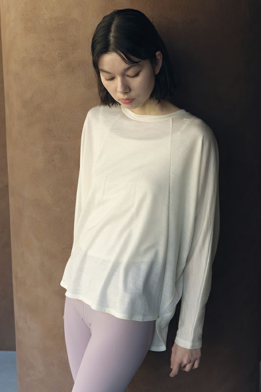 リラックス感のあるドルマンスリーブのレイヤードトップ。
