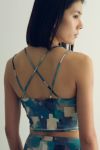 suriaのオリジナル、油彩柄のプリント。前はクルーネックでしっかりホールドしつつ、後ろはクロスデザインで綺麗な肌見せが叶うブラトップです。同柄の