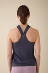 首元のノットがデザインポイントの「カップ付きブラトップ。トレンドのディティールなどを取り入れながら、ヨガに最適なサイズ感、形に仕上げています。