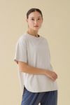 前後の裾がきれいにラウンドしているドロップショルダーのビッグTシャツ。安心感のある厚みと、何より今注目されている多機能素材を体感してほしい一枚。天然の抗菌性があり弱乳酸で肌にやさしく、水の使用量は綿と比べ90%削減、CO2排出量はポリエステルと比べ35%削減している環境に配慮した未来の素材です。