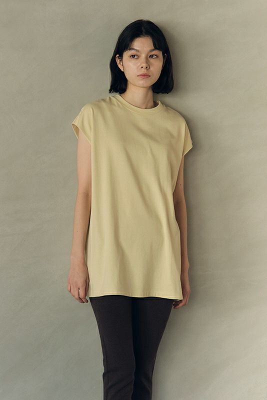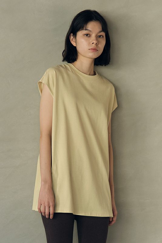 コットンのやさしい風合いのロング丈フレンチスリーブ。