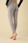 しなやかな伸びと適度な厚みのダブルニットで作った、スッキリ細身のテーパードパンツ。ウエストの紐でサイズ調整が可能です。