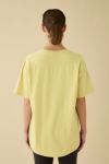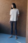 前後の裾がきれいにラウンドしているドロップショルダーのビッグTシャツ。安心感のある厚みと、何より今注目されている多機能素材を体感してほしい一枚。天然の抗菌性があり弱乳酸で肌にやさしく、水の使用量は綿と比べ90%削減、CO2排出量はポリエステルと比べ35%削減している環境に配慮した未来の素材です。