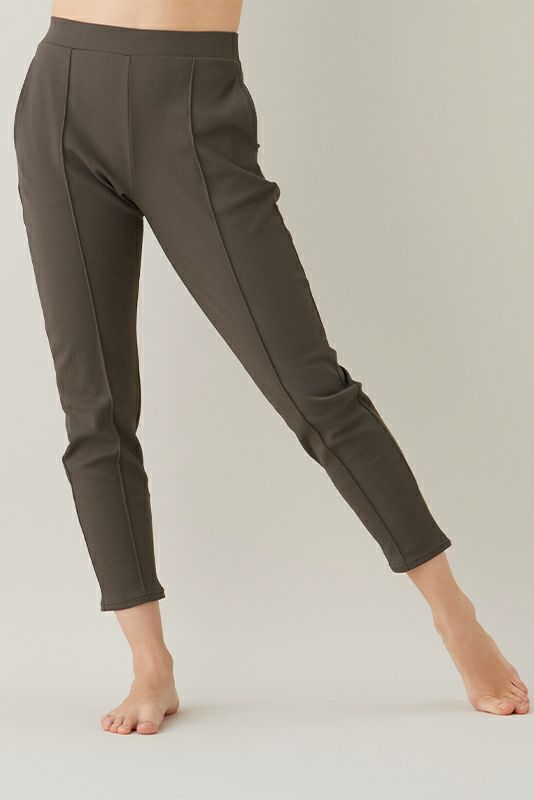 すっきりとした印象のテーパードパンツ。センタープレス風のピンタックが綺麗な印象を与えます。吸水速乾、抗菌防臭効果も。