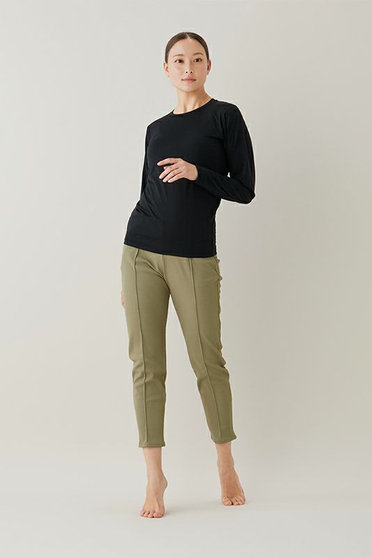 すっきりとした印象のテーパードパンツ。センタープレス風のピンタックが綺麗な印象を与えます。吸水速乾、抗菌防臭効果も。