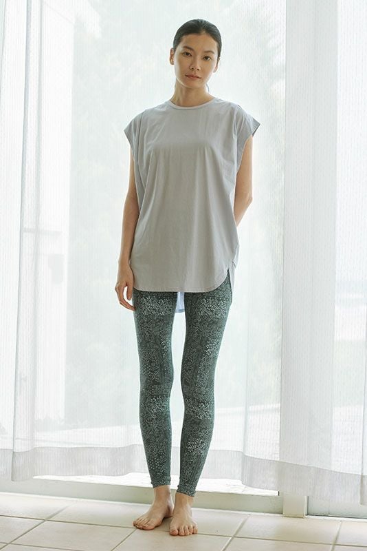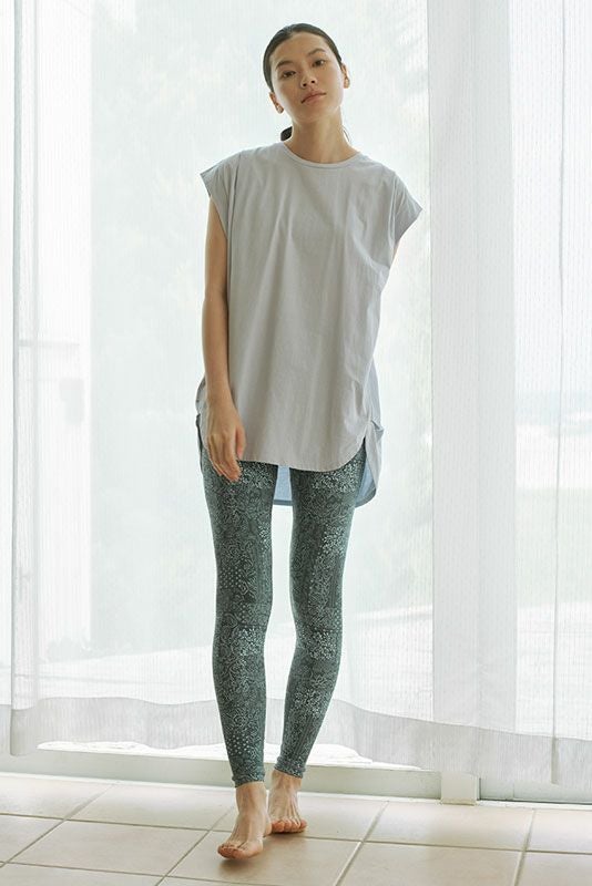 とのセットアップコーデもおすすめ。柔らかく滑らかな手触りと非常に優れた着用感。速乾性もあるのでホットヨガにも◎