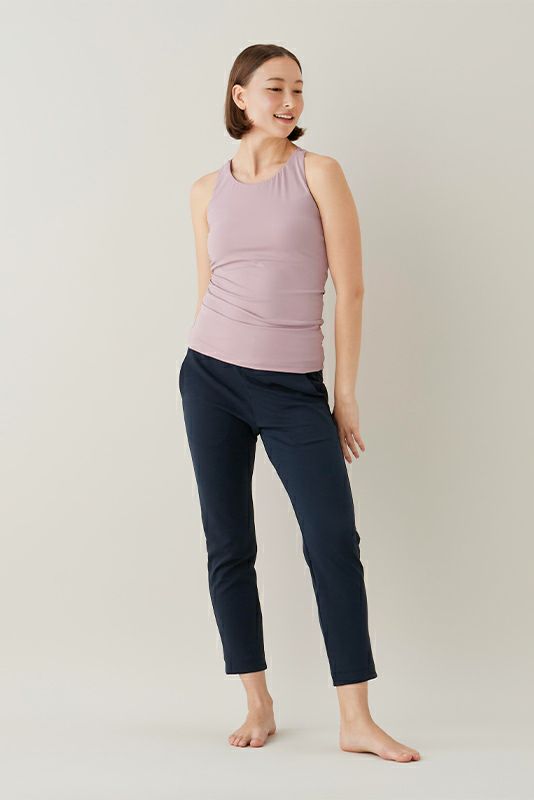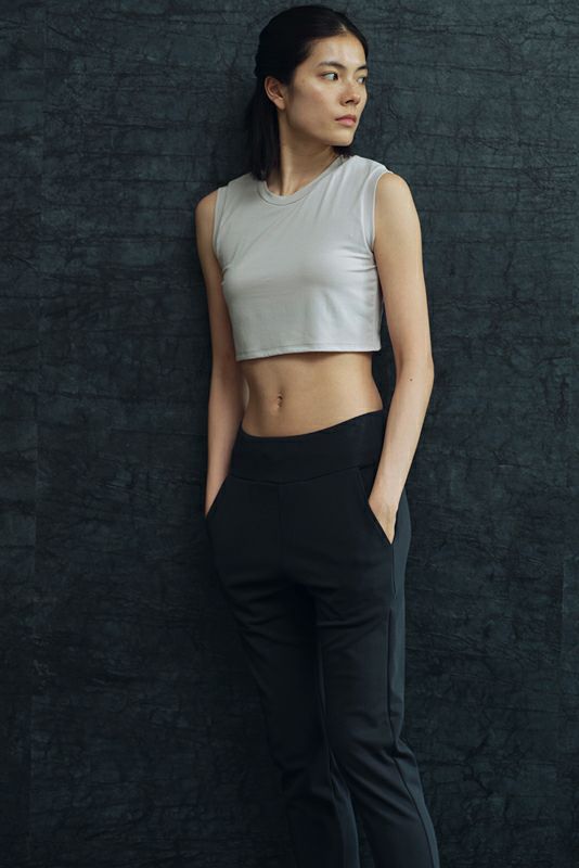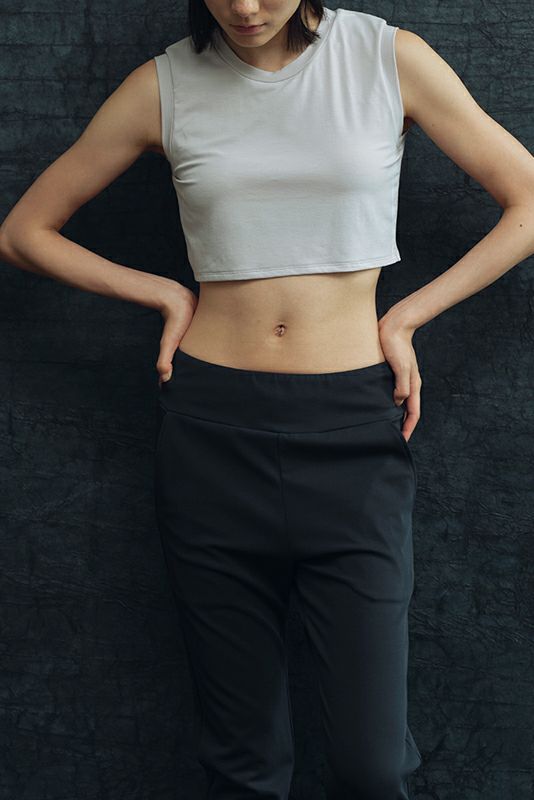 マットでナチュラルな表面感のパンツです。素材には程よくハリがあり、綺麗目な印象です。