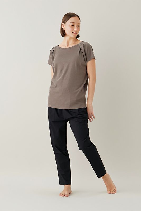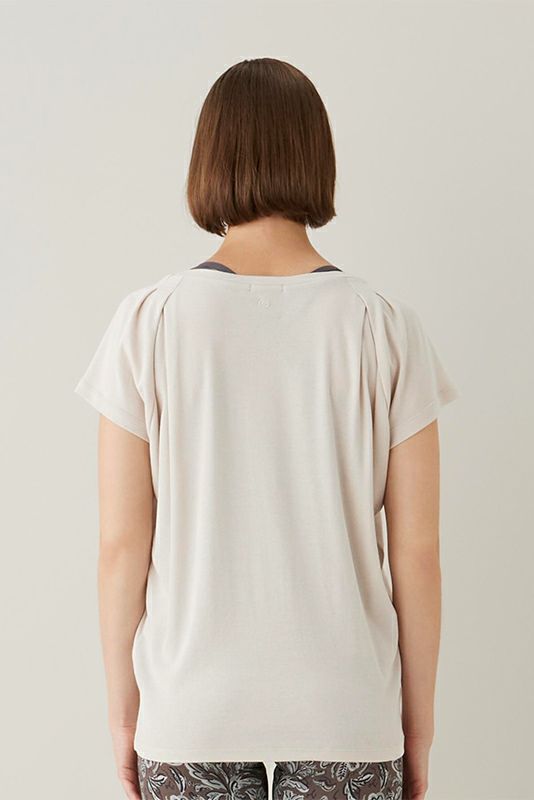 肩に贅沢に入ったタックがデザインポイント。