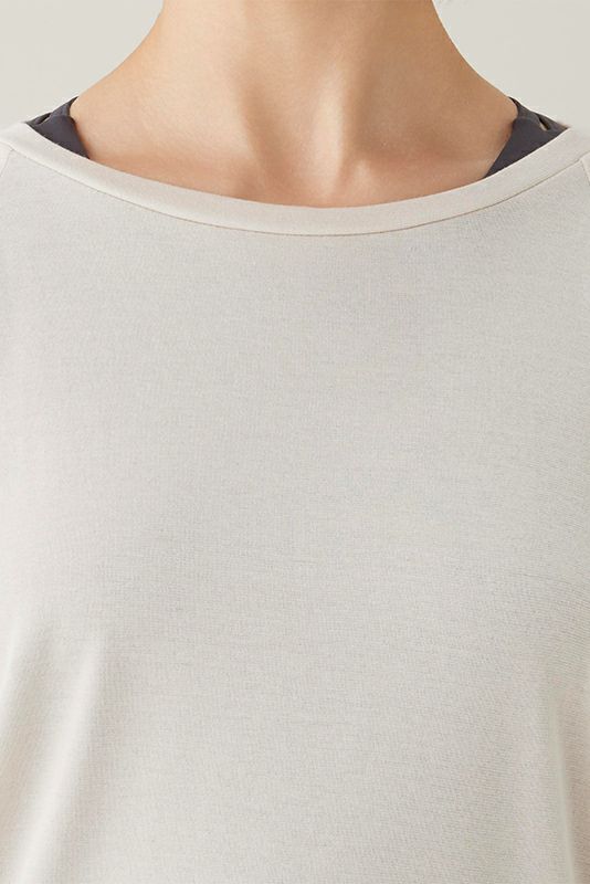 高級綿のスーピマを使用し、ハイゲージの編み機のハリを細かく調整することで、透けにくく膨らみのある素材に編み上げることが出来ました。伸びが良く、毛羽を極限まで抑えることにより、生地と生地が貼り付くことのない、滑らかな風合いに仕上げました。