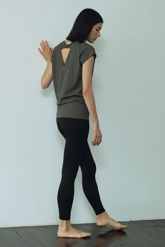 裾が2重になってヒップでフィットするデザインになっています。後ろはV字のあきがあり、ベンチレーションとして機能するほか、インナーのブラをチラリと見せてコーディネートした時に綺麗に見えるように工夫されています。