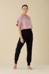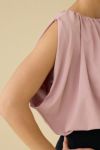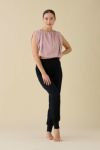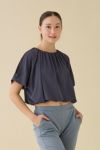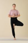 ギャザーをふんだんに入れてバルーンのようなボリューム感を出し、トレンドのシルエットをヨガウェアに落とし込みました。肩のスリット部分から腕を出してノースリーブのようにも着られます。