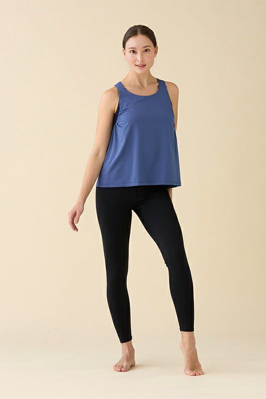 ふんわりシルエットのインナーにはしっかりとフィットしたタンクが縫い付けられています。インナーと外側が大人っぽい同系の配色に。トレンドのディティール、ギャザーを袖下に入れてクールなカラーにフェミニンさもプラスされています。