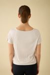ウエストがしっかり腰で留まる安心感のあるブラ付き半袖トップス