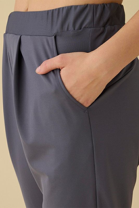 安心感のある股上でゆったり身体を包み込む、リラックスシルエットのパンツです。スッキリした表面の素材で、シャープな雰囲気にまとまります。