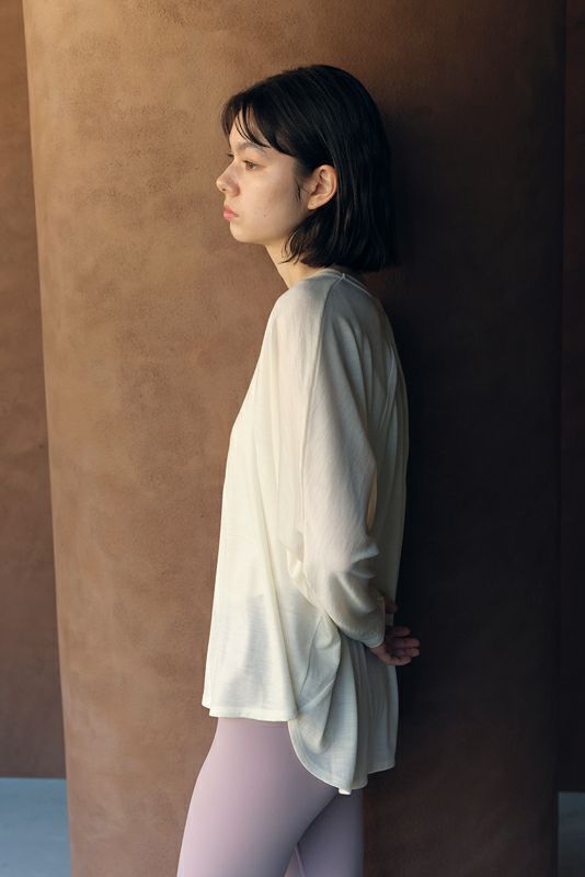 リラックス感のあるドルマンスリーブのレイヤードトップ。