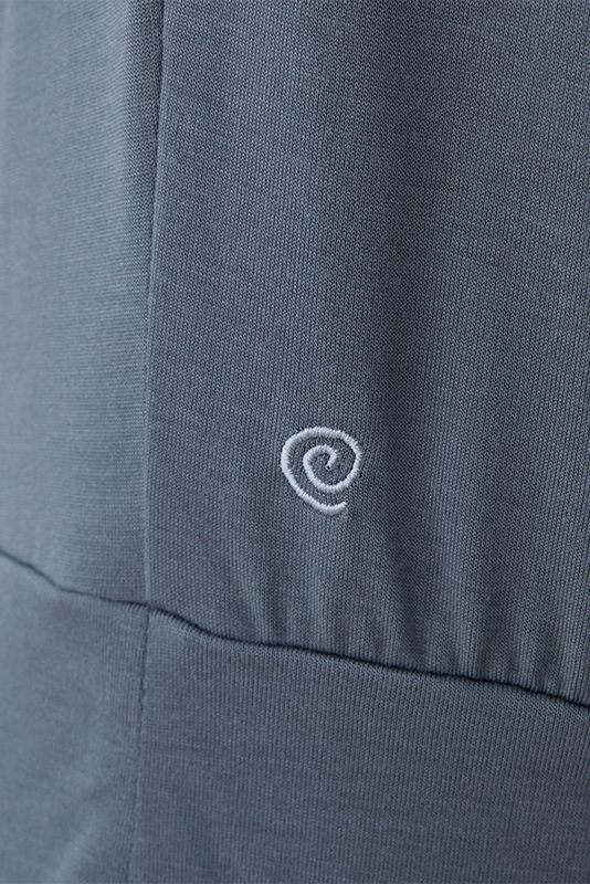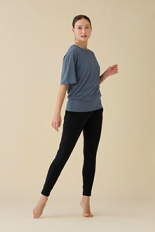 ゆったりビッグシルエットながら腰でしっかりとまるデザインです。後ろ中心の切り替え部分で縦にあきがあり、ベンチレーションになってるので風通しも◎。ストレッチ性があり動きやすく、天然の抗菌作用も。