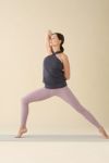 首元のノットがデザインポイントの「カップ付きブラトップ。トレンドのディティールなどを取り入れながら、ヨガに最適なサイズ感、形に仕上げています。