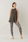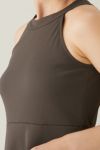 表面に凹凸感のある特徴的な素材を使用。やや長めの丈で気になるヒップ周りをカバーしつつ、裾までインナー付きなので、逆転のポーズでもインナーをボトムインすればお腹が見えない安心のデザインです。