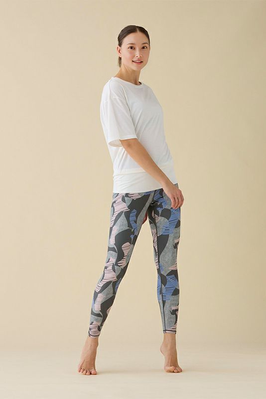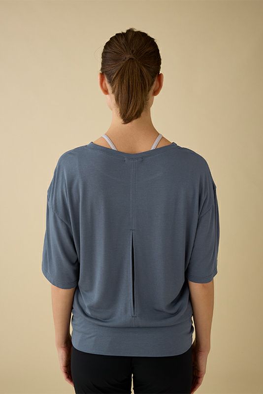 ゆったりビッグシルエットながら腰でしっかりとまるデザインです。後ろ中心の切り替え部分で縦にあきがあり、ベンチレーションになってるので風通しも◎。ストレッチ性があり動きやすく、天然の抗菌作用も。