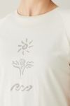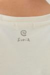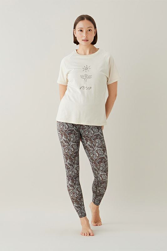 suriaとヨガのイメージをもとに、太陽・木・波をモチーフに描き下ろしたコラボTシャツ。後ろには手描きのブランドロゴもプリントされています。