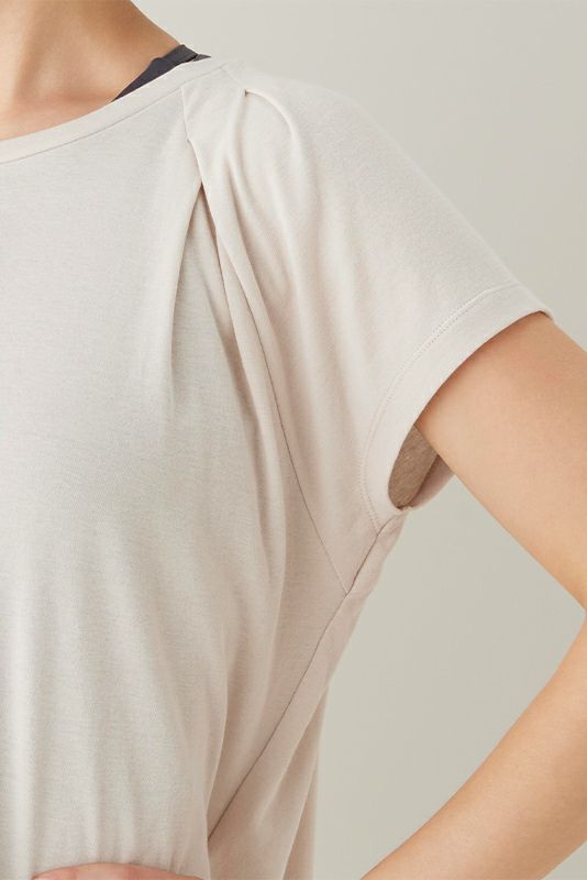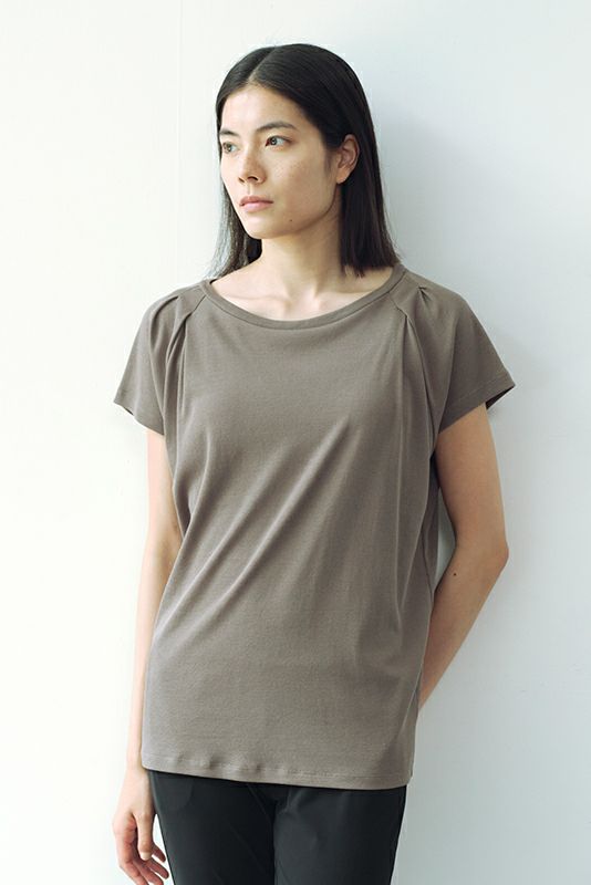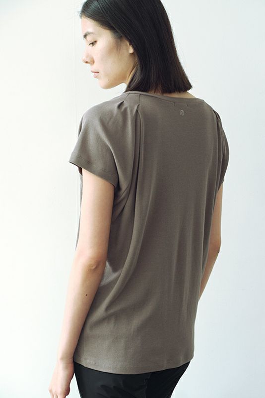 肩に贅沢に入ったタックがデザインポイント。