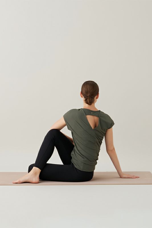 裾が2重になってヒップでフィットするデザインになっています。後ろはV字のあきがあり、ベンチレーションとして機能するほか、インナーのブラをチラリと見せてコーディネートした時に綺麗に見えるように工夫されています。