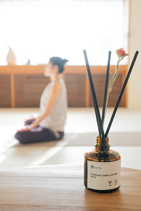 アロマディフューザーとソックスがセットになった、オンライン限定のsuriaオリジナルギフトBOXです。アロマディフューザーは1輪挿しの美しいハーブの彩りと、天然精油100%で調香した自然ならではの優しくて深みのある香りを日常にお届けします。