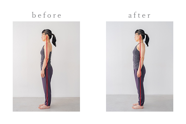 背骨が本来のS字カーブを取り戻し、体の中心軸が整います。体感だけで違いに驚くはずです。