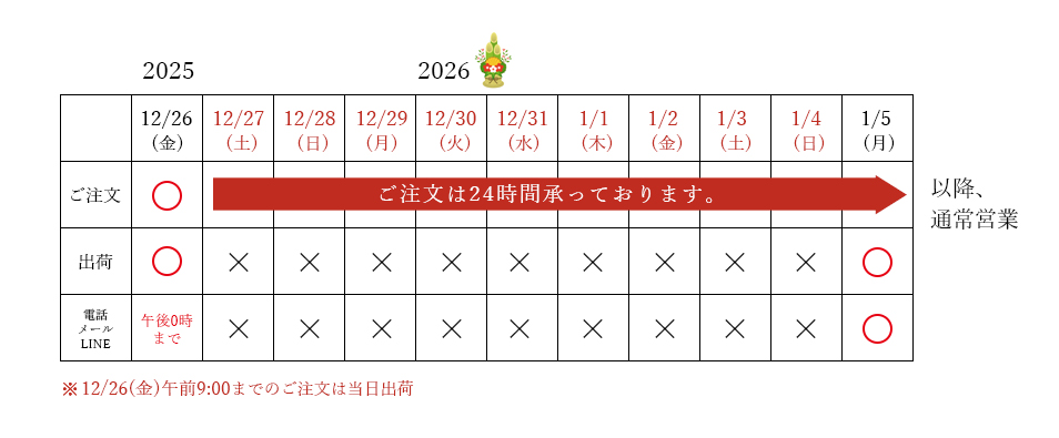 ・12/26(金) 午前9時以降のご注文…1/5(月) より順次出荷
