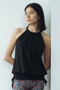 とても肌触りがよく、着心地も最高に良いです。 155cmでMサイズ購入 他のウェアに比べると生地が柔らかいので ゆとりがありますが問題ないです。 色違いも欲しいです。 肩のデザインがポイントになります。